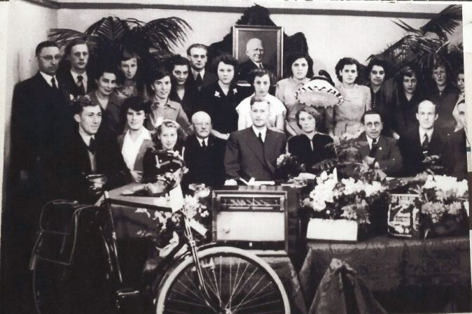 Via via ontvingen we een foto van een bijeenkomst, mogelijk jubileum, met het personeel van Bischoff. En…. met een vraag welke personen staan er op? De winkel van Bischoff sierde tot 1980 de hoek van de Westzijde met de Stationsstraat. Van de foto is geen jaartal bekend, maar wel zijn enkele namen genoemd.