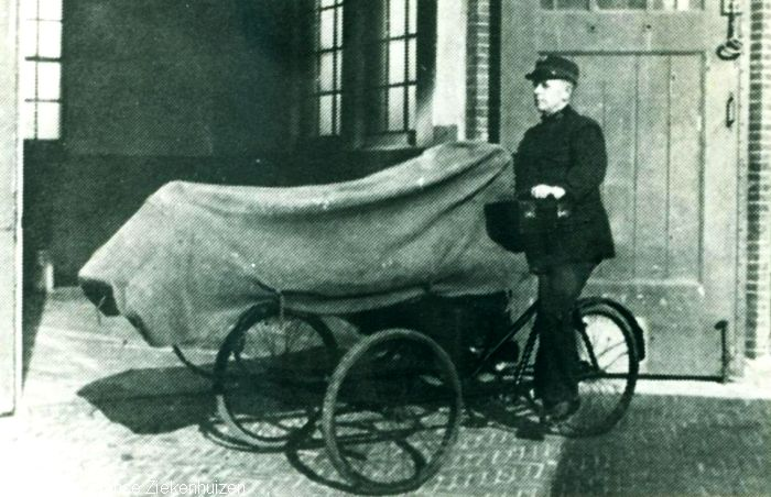 Hetzelfde had gezegd kunnen worden van broeder Van Dam die vanaf 1919 in dienst is van de gemeente Zaandam. Misschien was hij wel de spil van het begin van de Zaandamse ziekenhuizen. Natuurlijk zijn de artsen en verpleegkundigen van belang, maar broeder Van Dam was de Eerste Hulp Bij Ongelukken, regelde het vervoer per Simplex brancardfiets, was fysiotherapeut, operatieassistent, bediende de röntgenapparatuur, wat al niet. De man op de brancardfiets op de foto zou broeder Van Dam kunnen zijn, maar soms werd voor vervoer naar Amsterdam, een politieagent gevorderd.