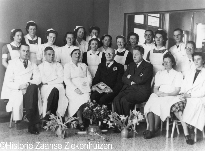 In 1949 vierde van Dam zijn 30 jarig jubileum in dienst van het gemeentelijk ziekenhuis en uiteraard is bij deze gelegenheid een foto gemaakt.