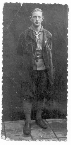 ‘ Toen ik 14 jaar werd begon ik als pakjongen bij Coöp de Eenheid in de Oostzijde in Zaandam. Later kwam ik bij de A.J.C. (Arbeiders Jeugd Centrale). Ik was hordeleider, leider van de verkoopcentrale en bestuurslid. (zie foto)