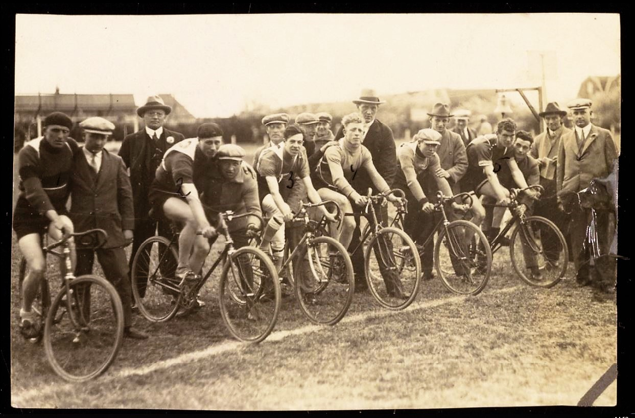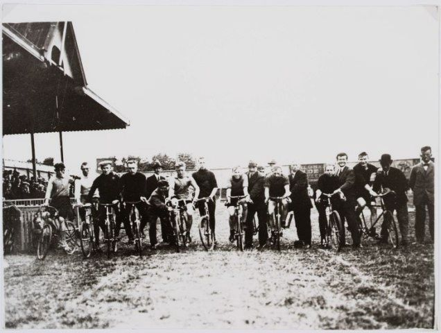 Grasbaanracen op het ZFC-terrein, om de wielersport populair te maken in de Zaanstreek.