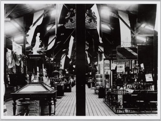 Wat viel er verder te zien? Een rieten gebouwtje waarin de bron ‘Elisabethbron’ Imperiaalwater exposeert en verkocht. Een stand van de cacaofirma van de Gebr. Grootes uit Westzaan.