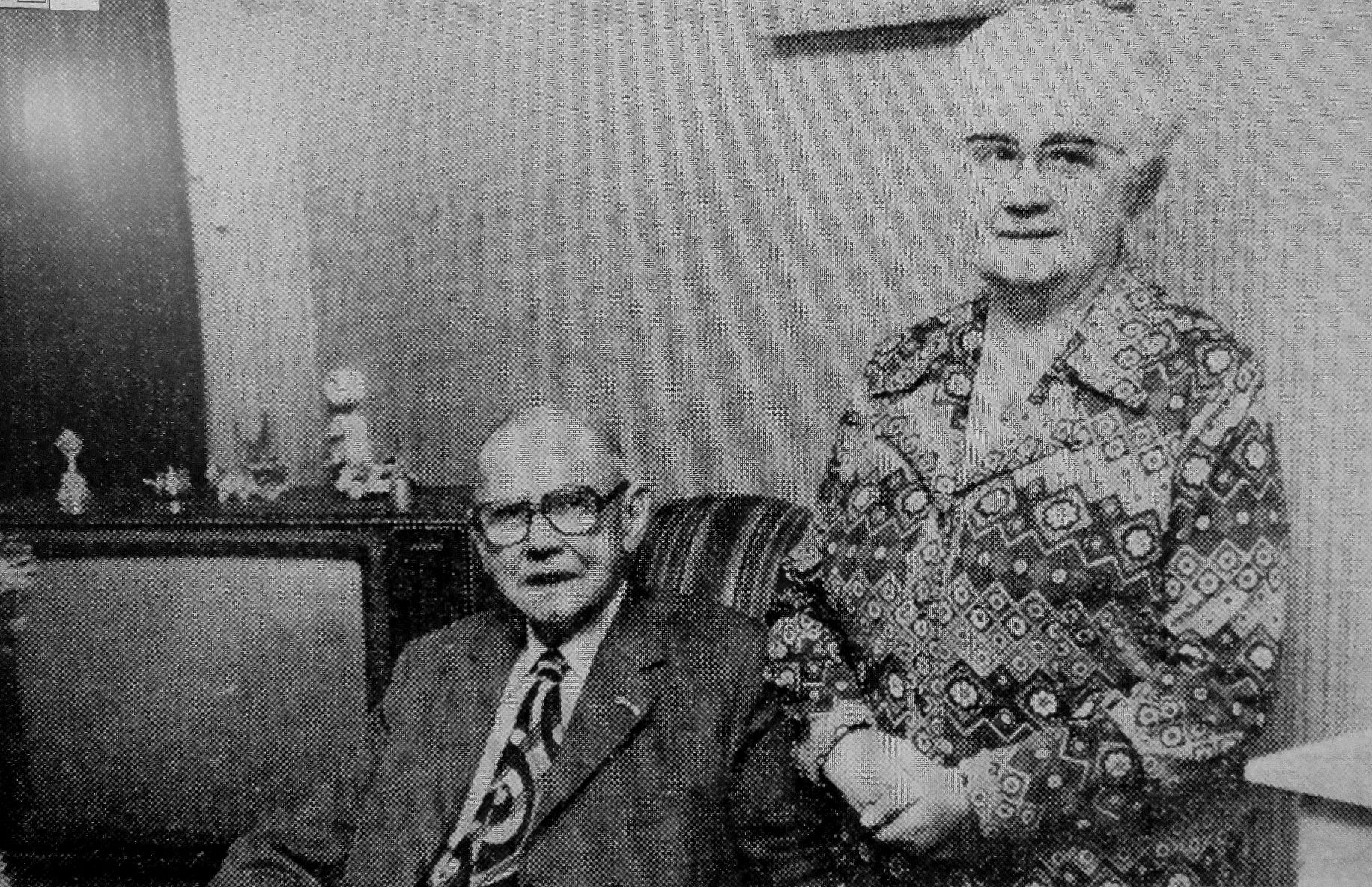 Dhr. Clijnk is gisteren 80 jaar geworden. Op de foto samen met zijn vrouw in de P.C. Allstraat 37. Nog altijd wordt hij geroemd om zijn motie voor het onbebouwd laten van de Kalverpolder.