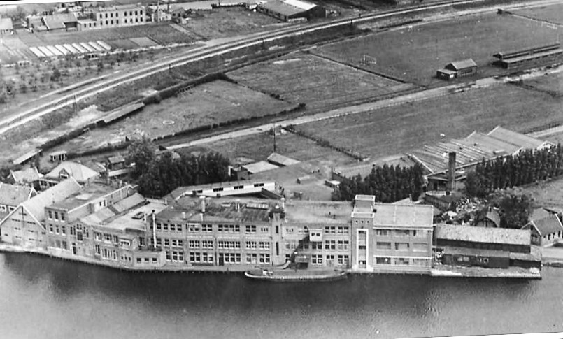 Op de achtergrond is de spoorbrug nog te zien en rechts de puddingfabriek van Homburg.