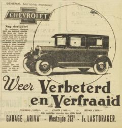 In 1923 was in het pand een garage gevestigd van de Automobiel- & Motorcentrale Starmans en Joosten. In 1926 verschijnen er advertenties van A.R.I.V.A. van dhr. Jb. Lastdrager. Naast Chevrolet verkocht hij ook Pontiac.