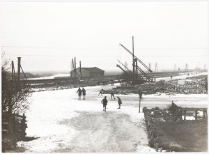 De fabriek stond in het Westzijderveld over de spoorlijn Amsterdam–Alkmaar ter hoogte van de Mallegatsloot die rechts op de foto loopt. De foto is van 1925. Er was nog geen Provincialeweg want die kwam er pas begin jaren ’30.