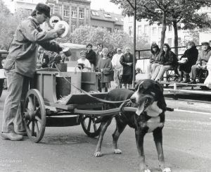 Een hondenkar was een voertuig dat door een trekhond werd voortbewogen. In het verre verleden maakten melkboeren, bakkers en meer handelaren die langs de deuren moesten met hun waar, gebruik van een hondenkar. Ook gehandicapten zag men wel met zo’n vervoermiddel. Je gaat er toch van uit dat iemand die dagelijks met zo’n hond of honden op pad gaat goed voor z’n beesten zorgt. Meestal was dat wel het geval, meestal want er waren ook grote misstanden.