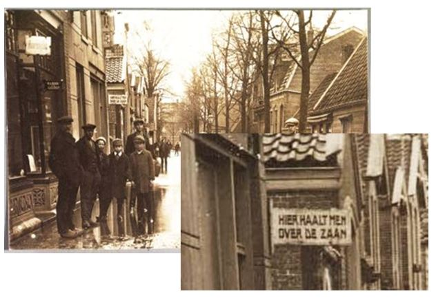 Wij willen u nog wat plaatjes laten zien waar men in de straat, in dit geval de Oostzijde, kon zien waar een overzetje naar de Westzijde te halen viel. Dat was natuurlijk heel belangrijk toen alleen nog de Hogendam gelegenheid gaf om naar de overkant van de Zaan te geraken.