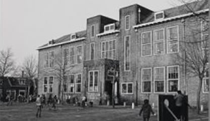 “Als je van de Zuiddijk kwam dan kwam je bij de tweede straat links zo door de Lindenlaan en daar had je de Vissershopschool, vanuit huis keken we erop. Ik heb er zes klassen doorlopen. We hadden eerst juffrouw Fransen en nog juf de Bas–Blokker. Dan had meester Bedet, meester Freederiks die we Buikie noemden; hij woonde op de Notenlaan.