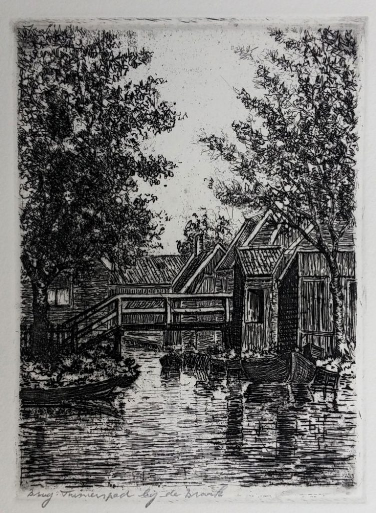 Wat zijn onderwerpen betreft bleef hij dicht bij huis. De straatjes en paden in de buurt en de mensen in de buurt, dat waren zijn onderwerpen. Nu zijn we dankbaar dat er mensen zijn geweest die of getekend, geschilderd of gefotografeerd hebben toen het ‘oude Zaandam’ er nog was. Je zou hem een maatje van Jan Kruijver kunnen noemen die ook veel verdwenen panden, molens heeft vastgelegd. Verschillende etsen zijn nog te koop.
