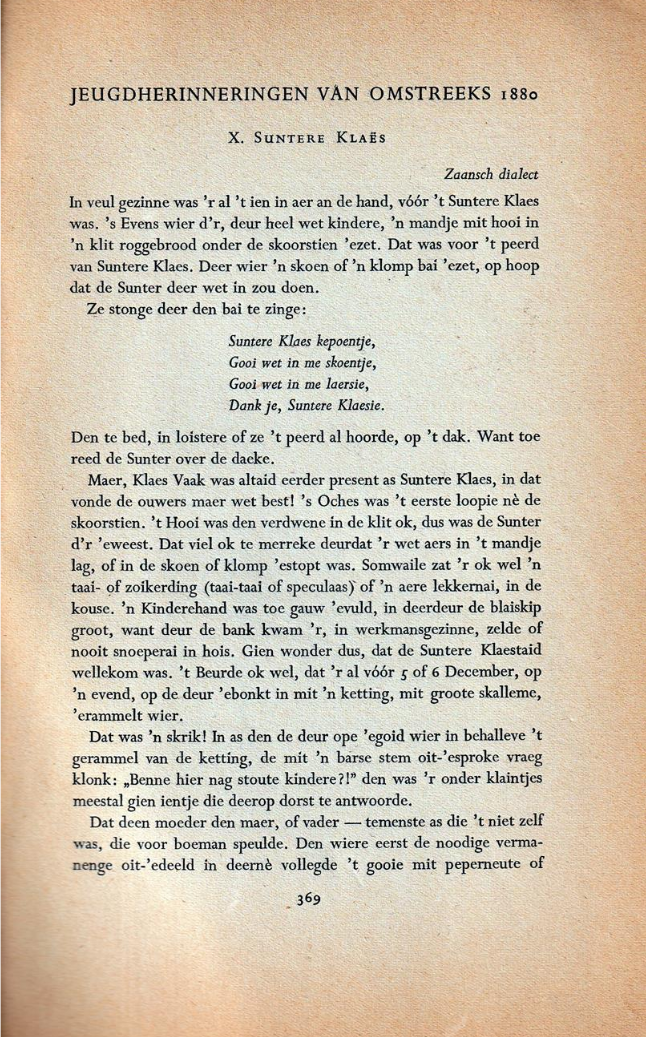 Herinneringen aan Sinterklaas omstreeks 1880, in ut Zaens.