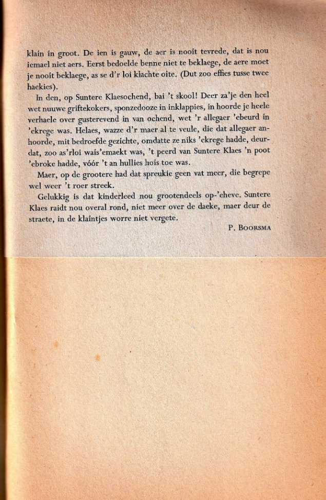 De Zaanse molenkenner Pieter Boorsma schreef zijn jeugdherinneringen op en één daarvan ging over ‘Suntere Klaes’. Een mooi moment om dat nu weer eens te laten zien. Het is in het Zaans dus het beste kan het hardop worden gelezen. Veel plezier.