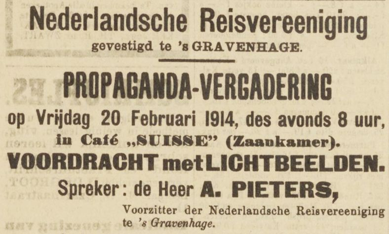 De Nederlandsche Reisvereeniging (NRV) was een algemene reisvereniging die van 1906 tot 1999 bestond. In 1914 waren er plannen om een afdeling voor de Zaanstreek op te richten en daarvoor werd op 20 februari in café Suisse een propagandabijeenkomst gehouden.